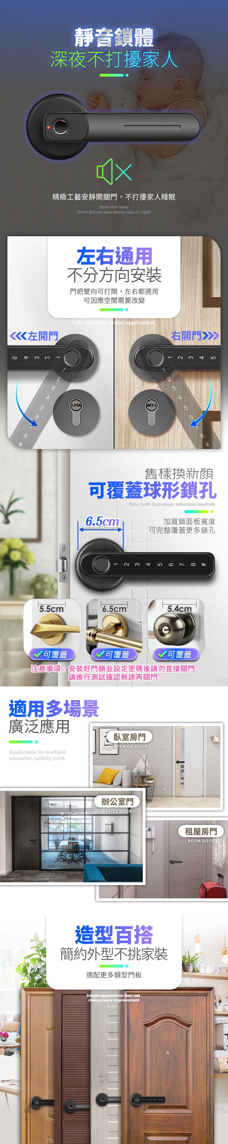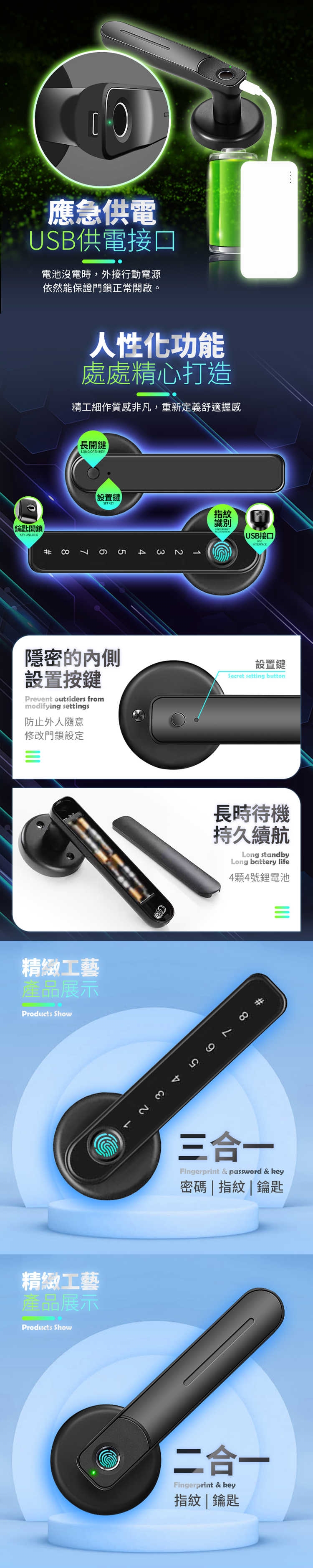 1.請您於安裝前先行檢查商品鎖孔、門邊緣道鎖體尺寸,並確認無誤再進行安裝裝好鎖後請勿直接關門,請進行測試至少5次以上如遇電池沒電 門外有緊急供電孔 可接USB電使用。