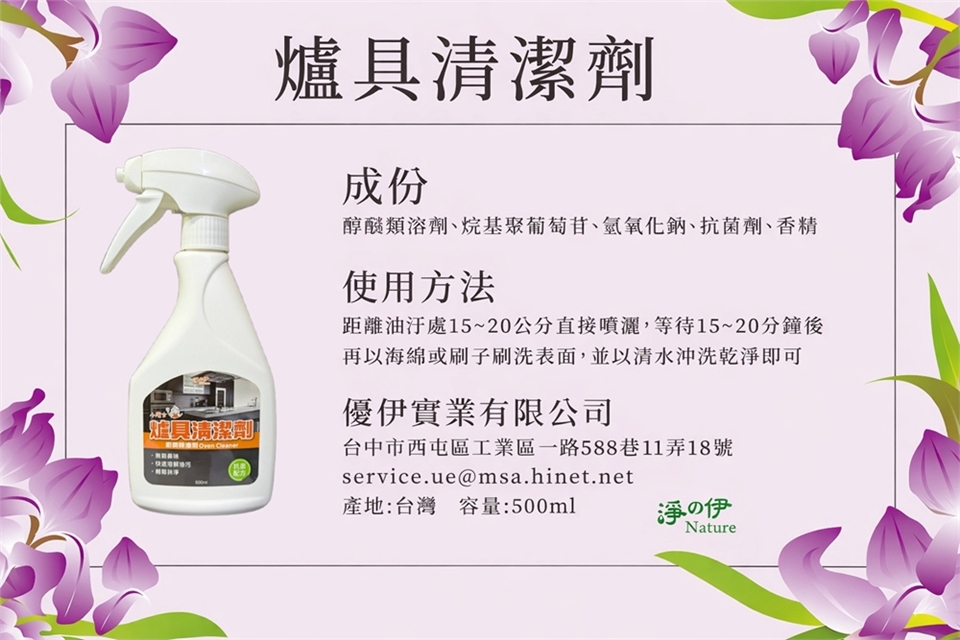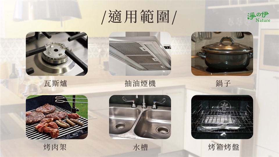 3.爐灶積油太重時,可先行將爐灶預熱至100±10℃後再噴灑本產品,效果