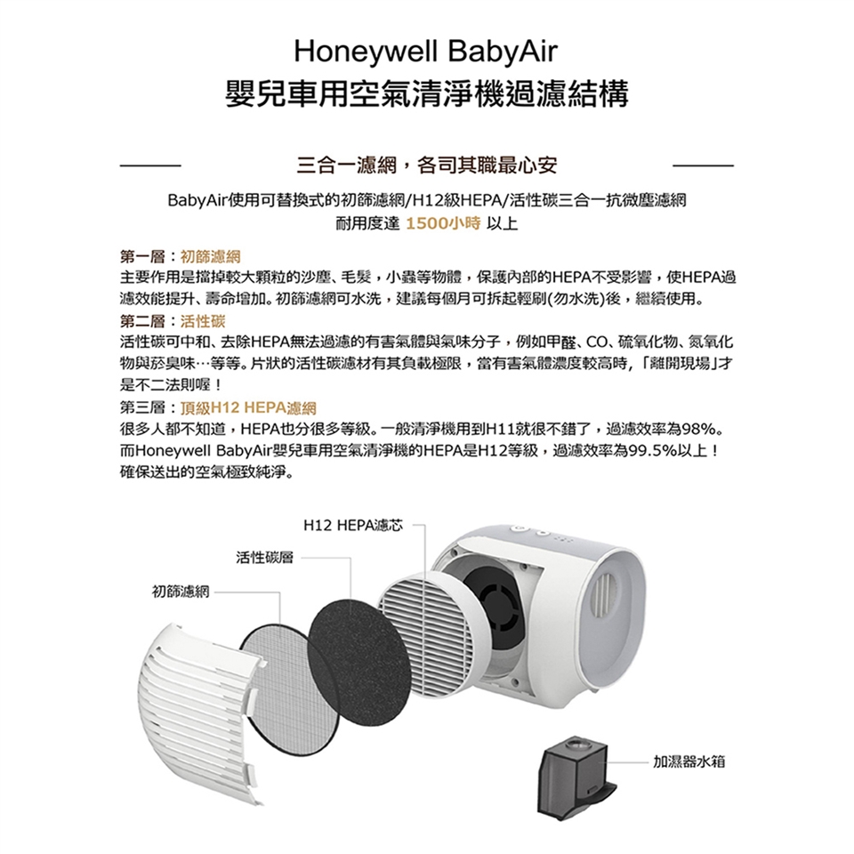 本產品更換濾芯,請務必使用 Honeywell BabyAir 嬰兒車用空氣清淨機原廠濾芯。