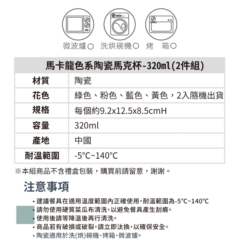 1.陶瓷為易碎品,請小心拿取並輕放;盛裝熱飲及熱食時,請小心燙手及燙口。
