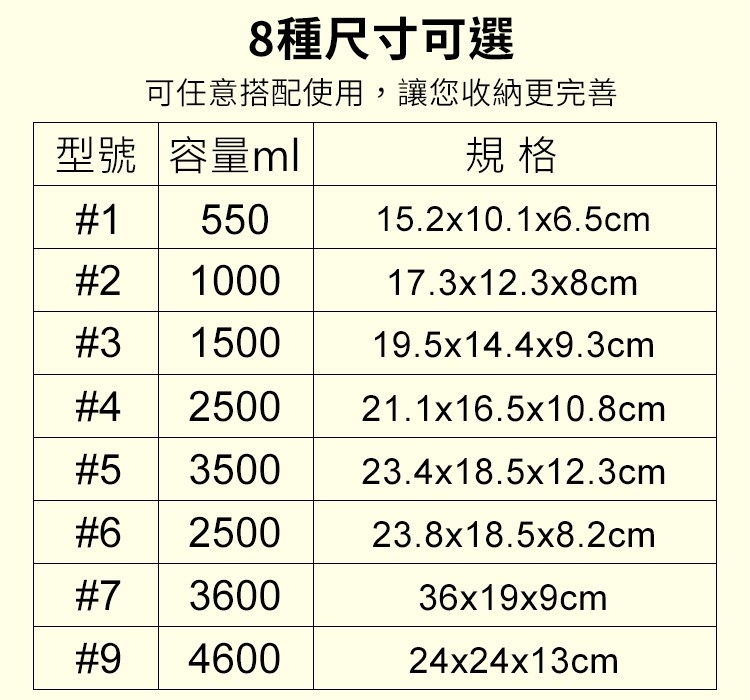 ●三款大小讓您一次擁有,分類盛裝不混淆!