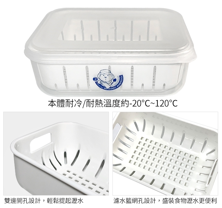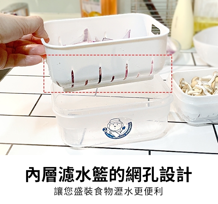 ●內層濾水籃的網孔設計讓您盛裝食物瀝水更便利!
