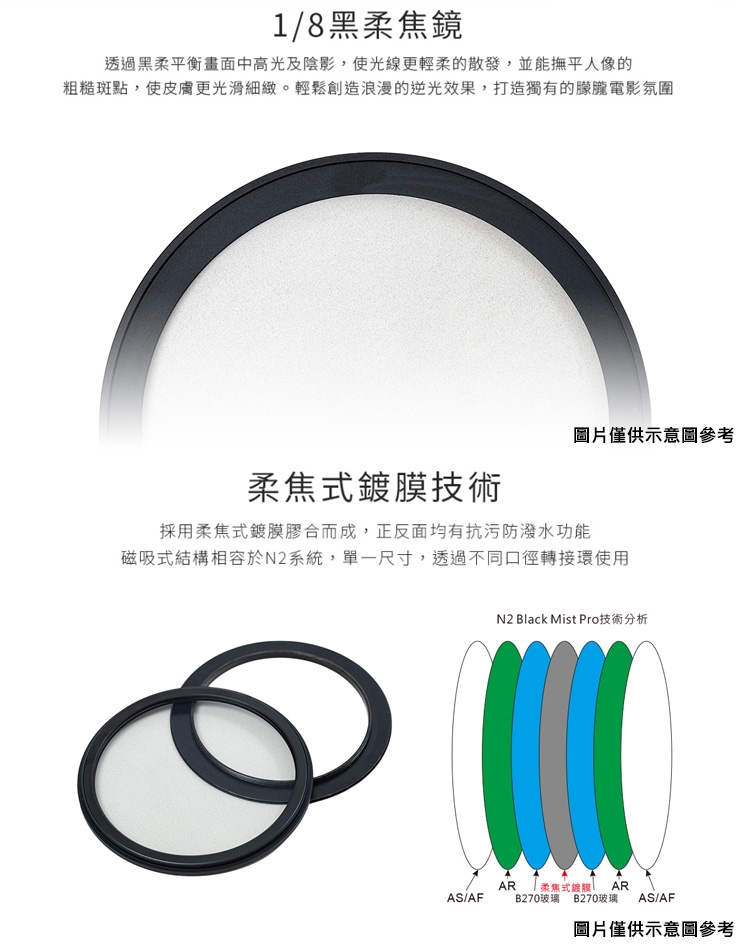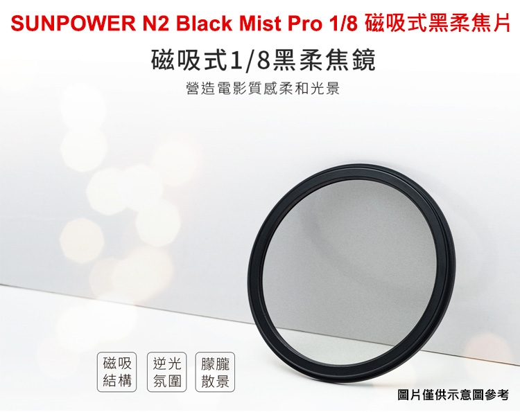 【本賣場為 SUNPOWER N2 Black Mist Pro 1/8 磁吸式黑柔焦*1+轉接環(任選1),圖片僅供示意參考】