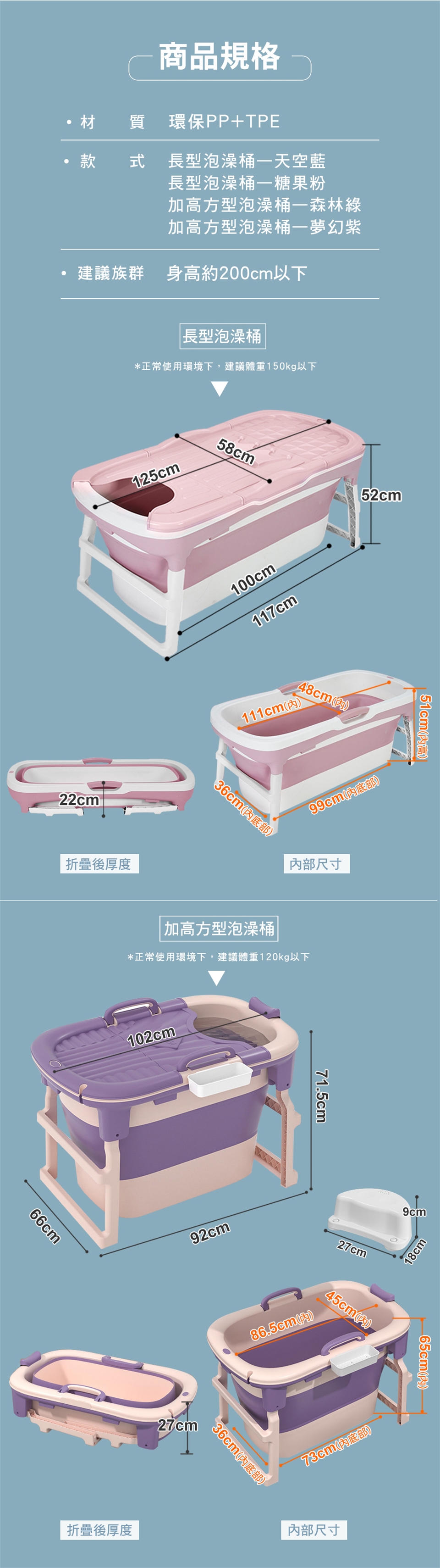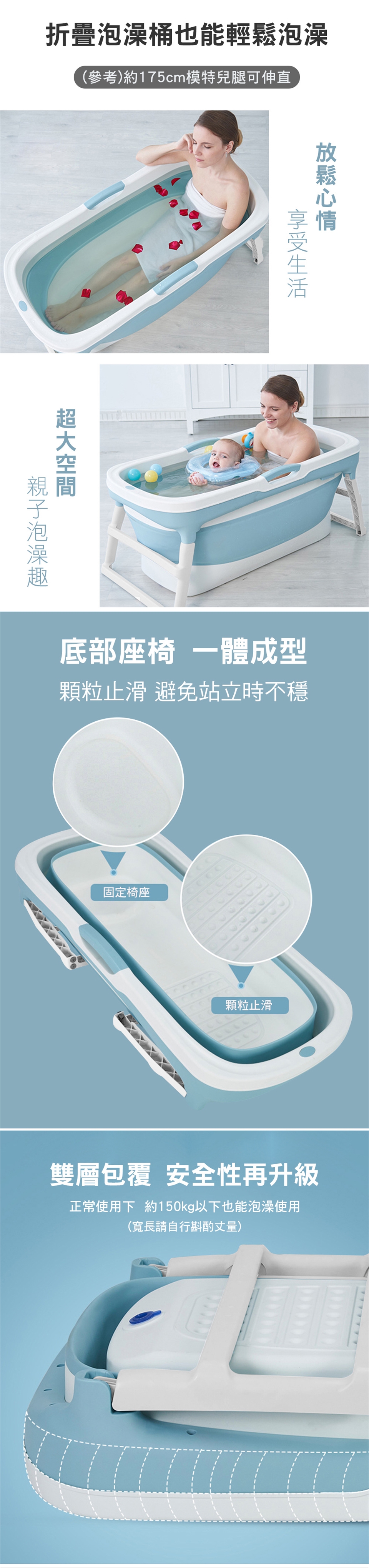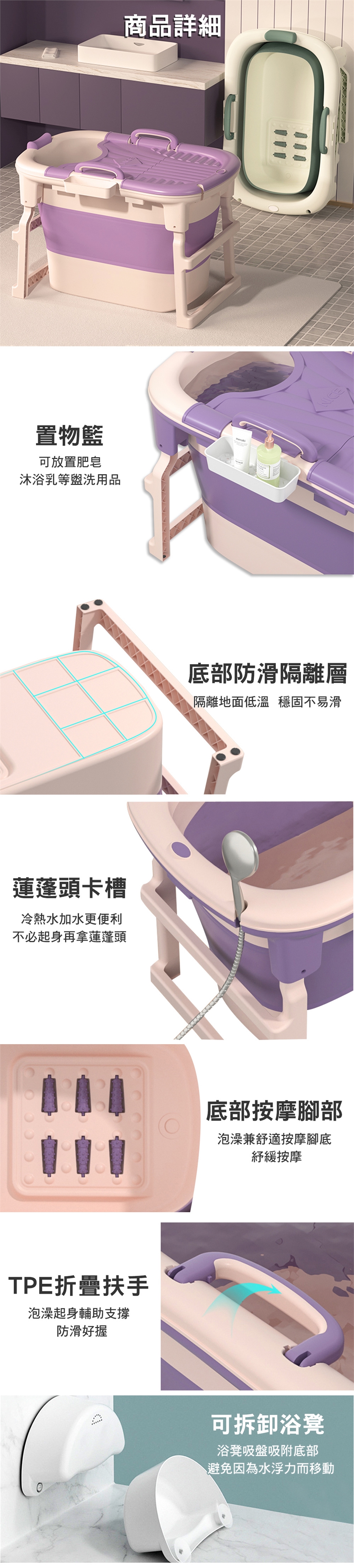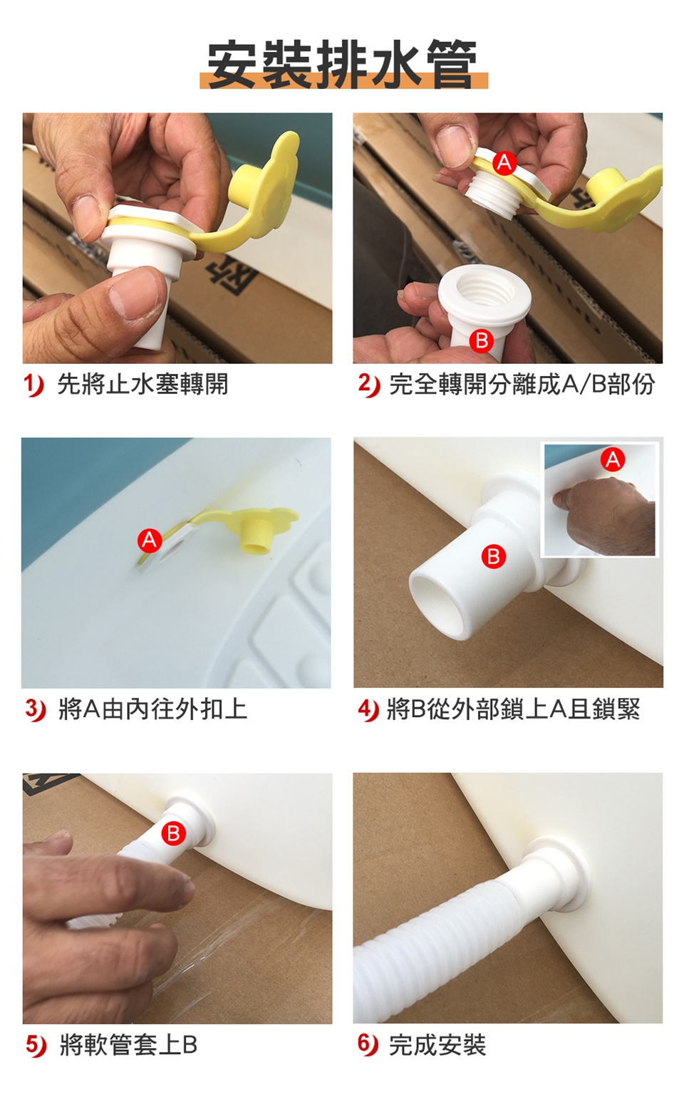 使用前:打開雙邊支撐腳,將泡澡桶推出,正確安裝側邊止水塞。