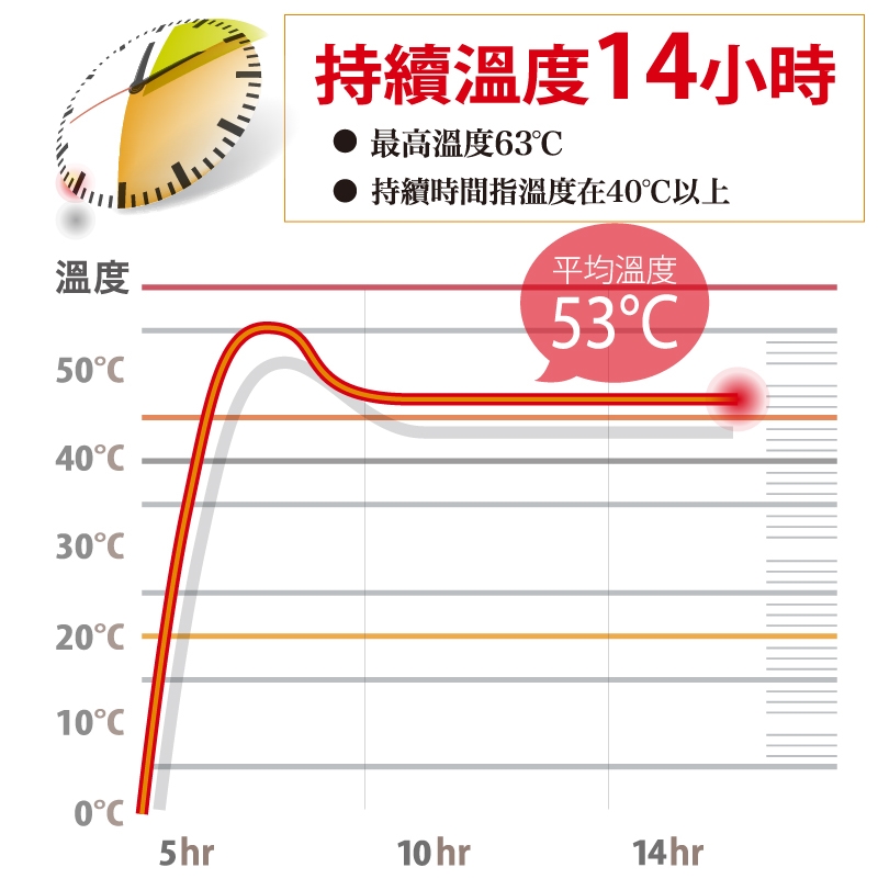 最高溫度63℃/平均溫度53℃/持續時間14小時(持續時間指在40℃以上)