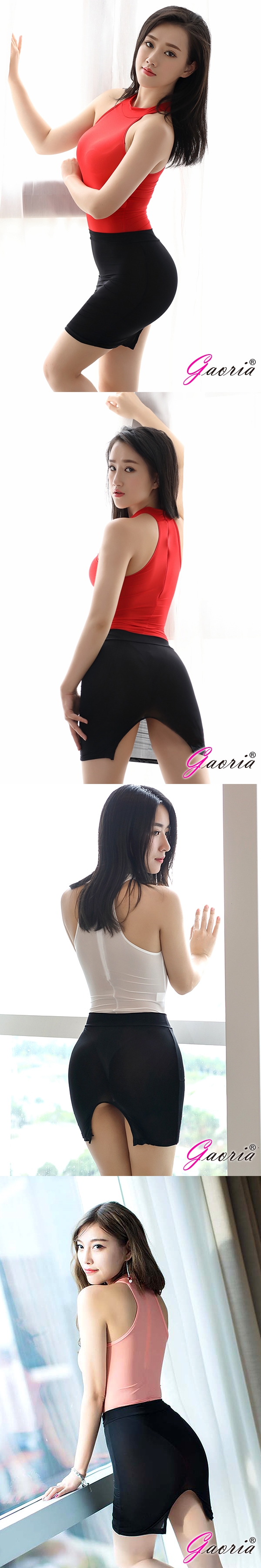 .商品內容:Gaoria 性感絲滑 透明後開叉緊身裙 半身裙 包裙 黑 |