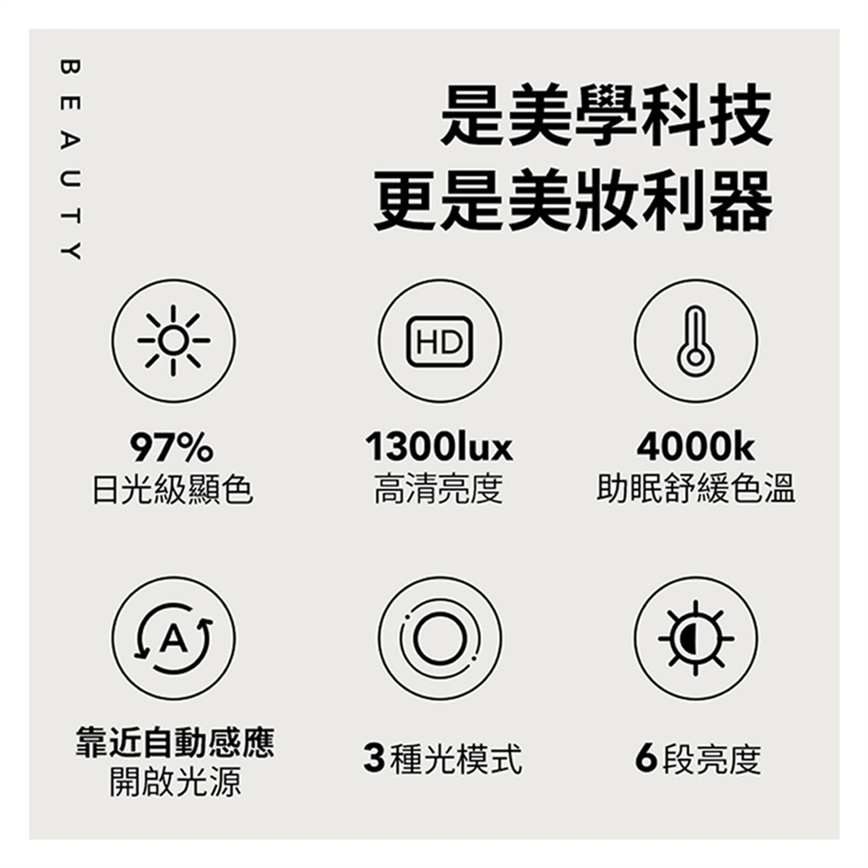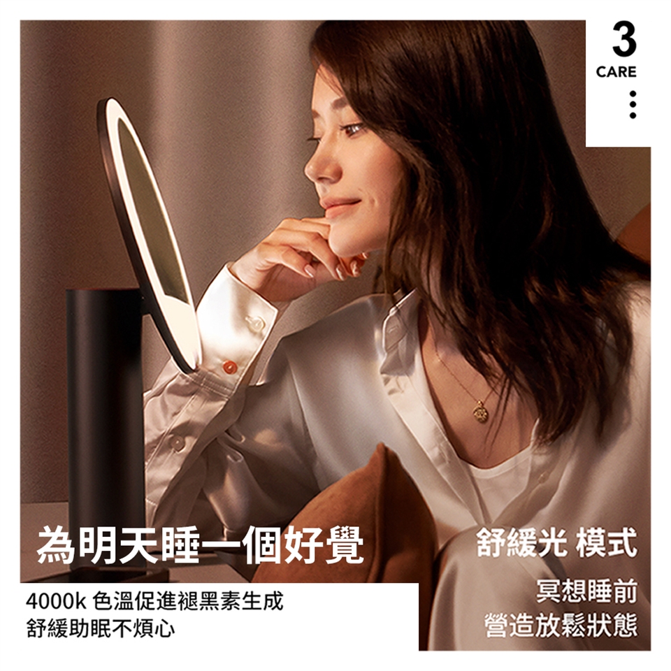 色溫光源: 明彩光(自然光) / 亮膚光(冷光) / 舒緩光(暖光)