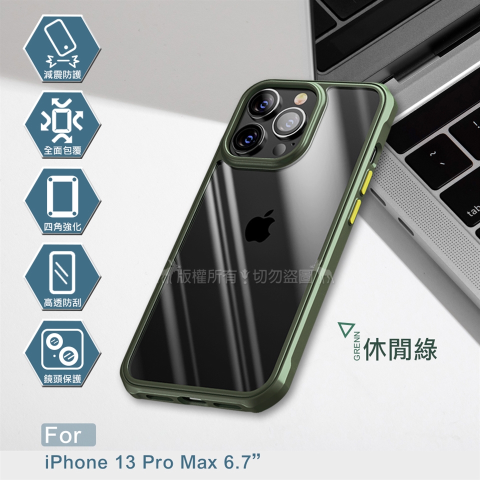 VXTRA 潮個性 iPhone 13 Pro Max 6.7吋 四角氣囊強化防摔保護殼 手機殼(休閒綠)
