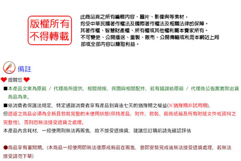 本商品為耗材,一經過水使用則無法再販售,故不接受退換貨,訂購前請先確認評估