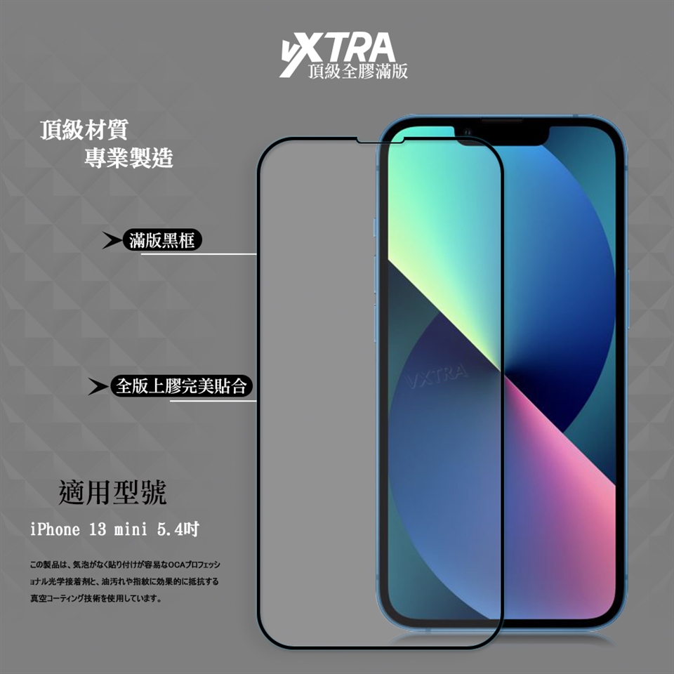 VXTRA 全膠貼合 iPhone 13 mini 5.4吋 滿版疏水疏油9H鋼化頂級玻璃膜(黑)