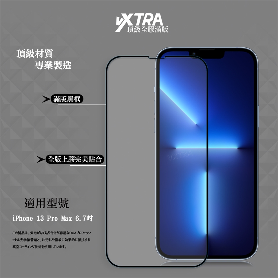VXTRA 全膠貼合 iPhone 13 Pro Max 6.7吋 滿版疏水疏油9H鋼化頂級玻璃膜(黑)