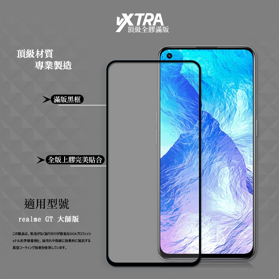VXTRA 全膠貼合 realme GT 大師版 滿版疏水疏油9H鋼化頂級玻璃膜(黑)