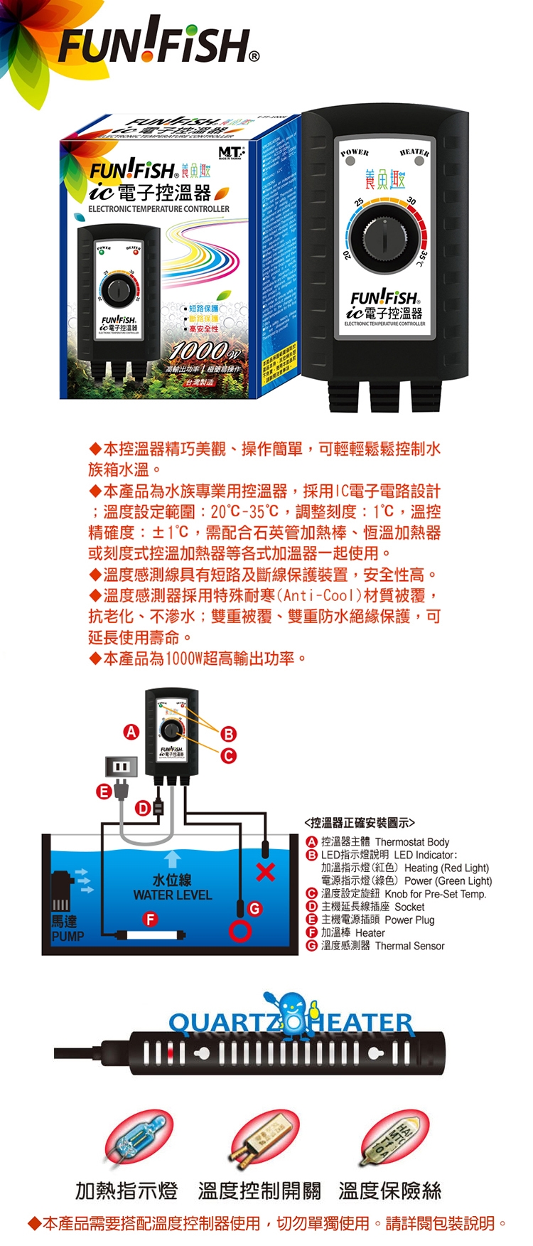 1.高貴魚隻如(龍魚/花羅漢/慈鯛等)建議改用控溫加熱器做雙重控溫保護。