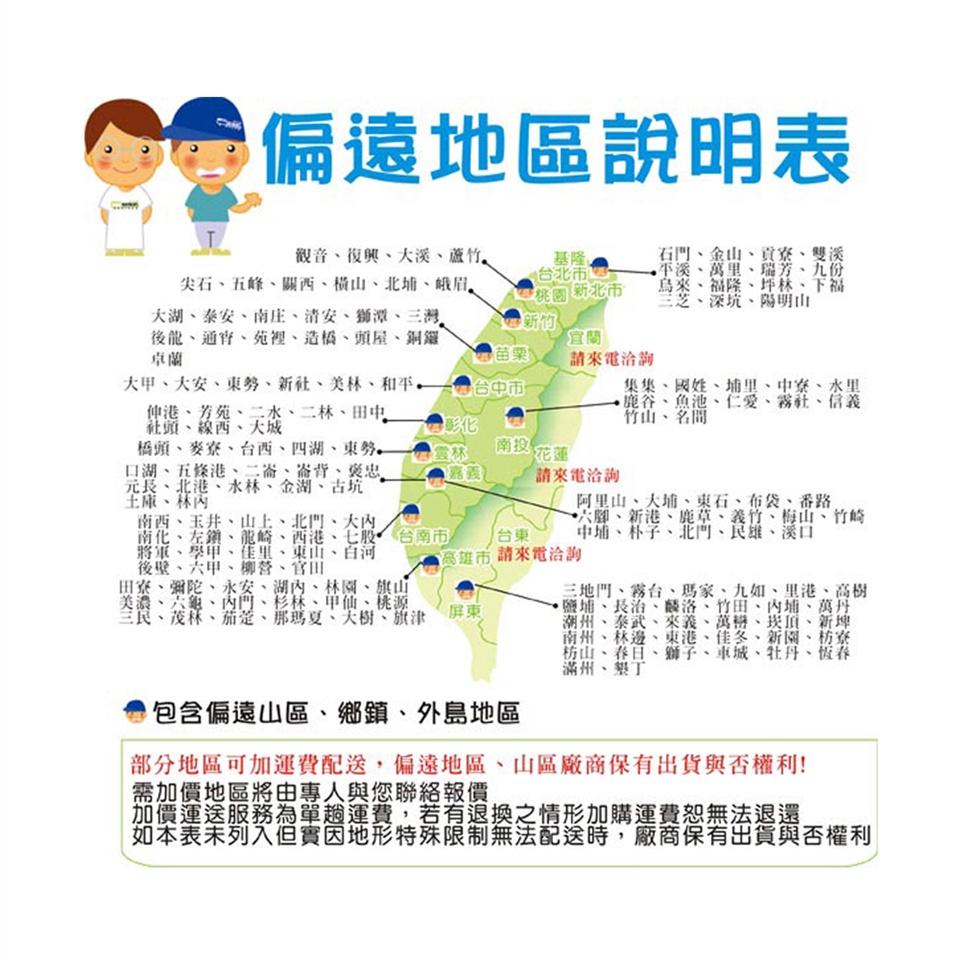 偏遠地區及山區另外報價 (依出貨廠商報價為主)。