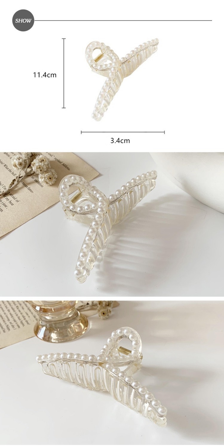 【MISS KOREA】韓國設計溫柔氣質透明珍珠抓夾 鯊魚夾 髮夾