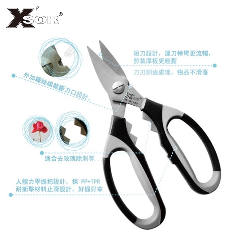 ●【品名】台灣X'sor膠板底片用45mm短刀刃剪7吋園藝剪DW-G7180(握把鉗式+PP/TP耐衝擊止滑)膠片剪底板剪手藝剪鐵線剪 亦適花店修枝除刺