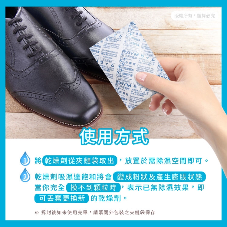1.將乾燥劑取出,放置於需除濕空間即可。