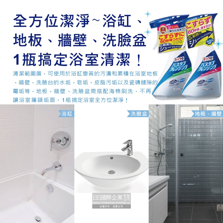 品名:LOOK PLUS多用途免刷洗浴缸去鈣除垢消臭衛浴清潔噴霧