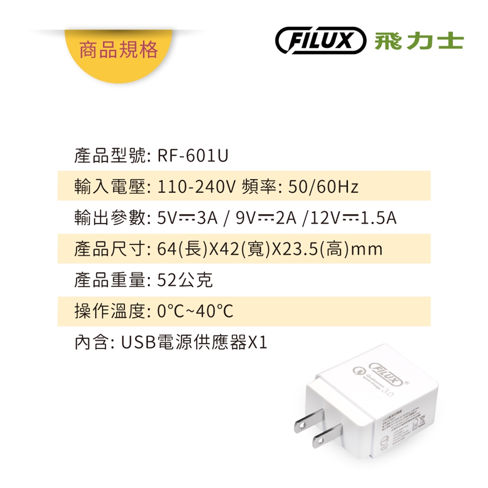 FILUX飛力士 USB極速充電器