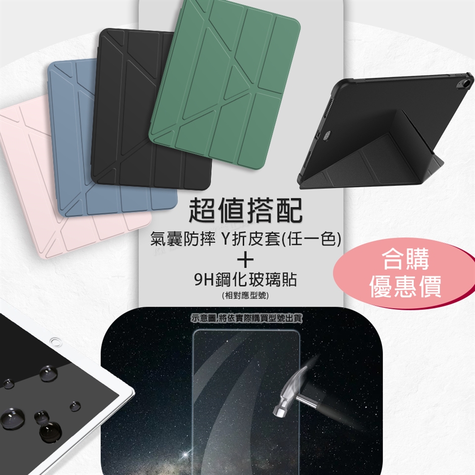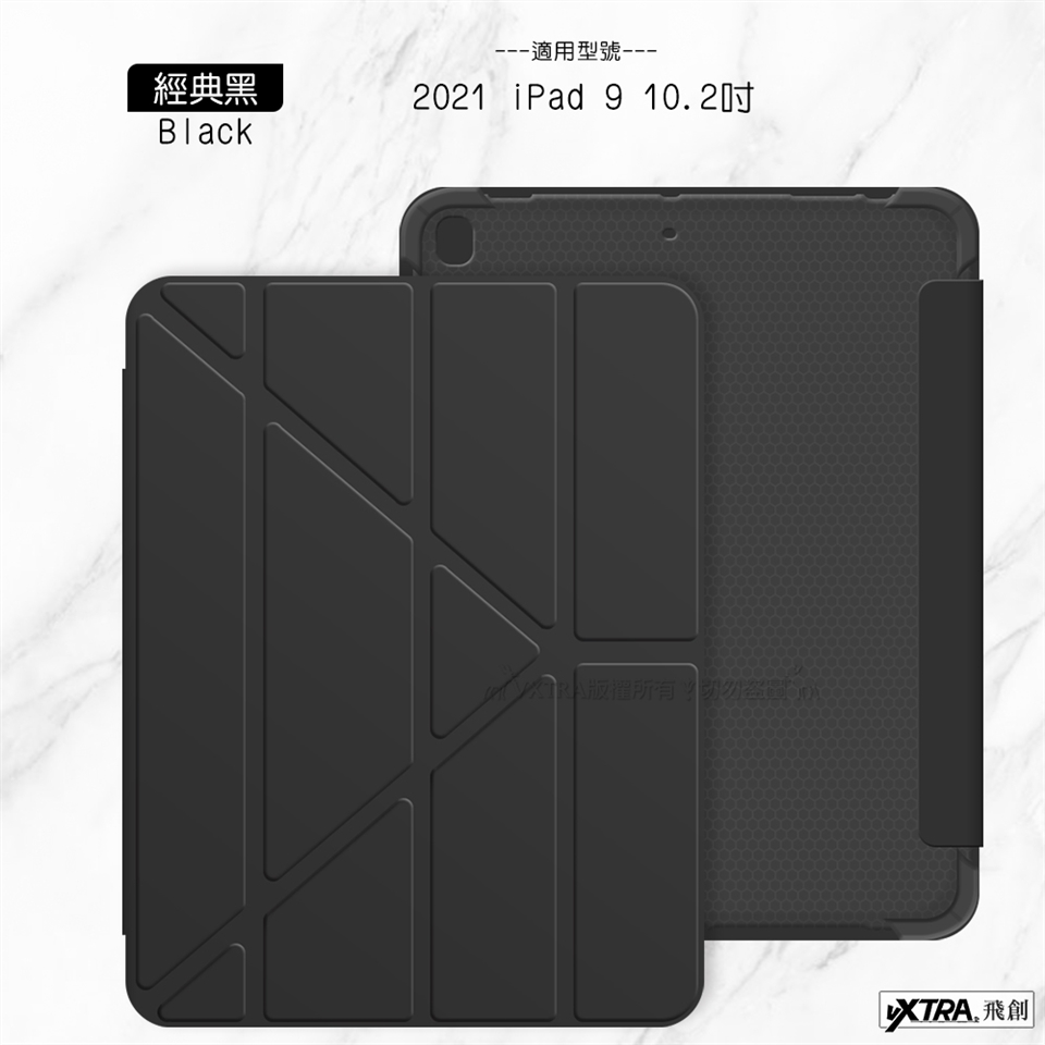 VXTRA氣囊防摔 2021 iPad 9 10.2吋 Y折三角立架皮套 內置筆槽(經典黑)+9H玻璃貼(合購價)