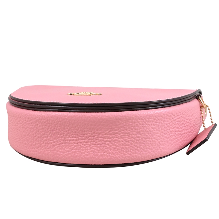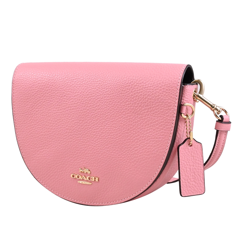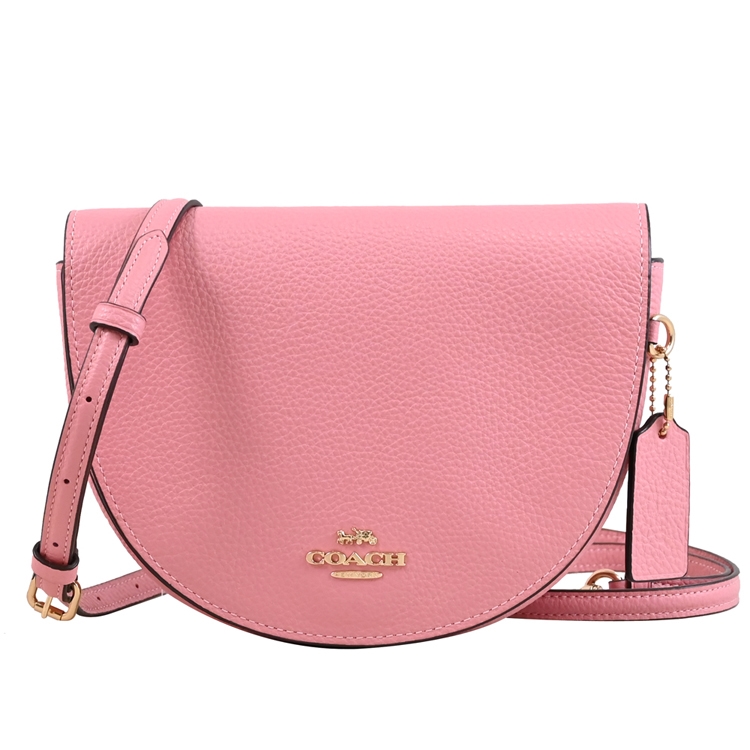 COACH 專櫃款,高人氣款式的半月包,採用馬車LOGO搭配荔枝皮革材質,翻蓋開口/包身1貼袋+前1貼袋+包身外1貼袋,附質感皮革LOGO吊飾,內可放手機等等,可側背或斜背,甜美高雅且又精緻小巧,熱銷時尚包款,整體釋放都會簡約時尚風格。