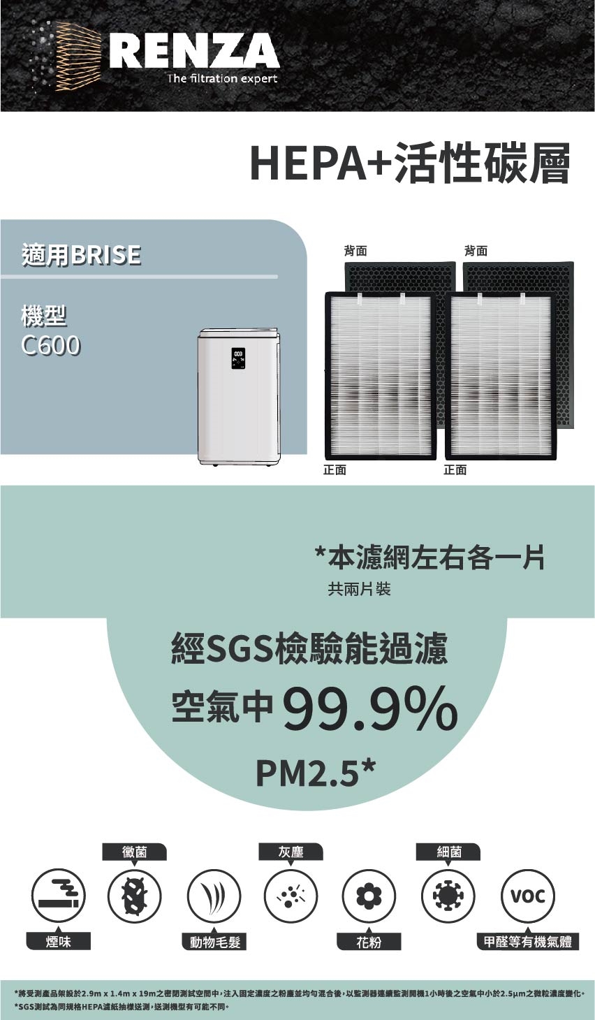 二合一高效HEPA+活性碳濾網組 X 2片