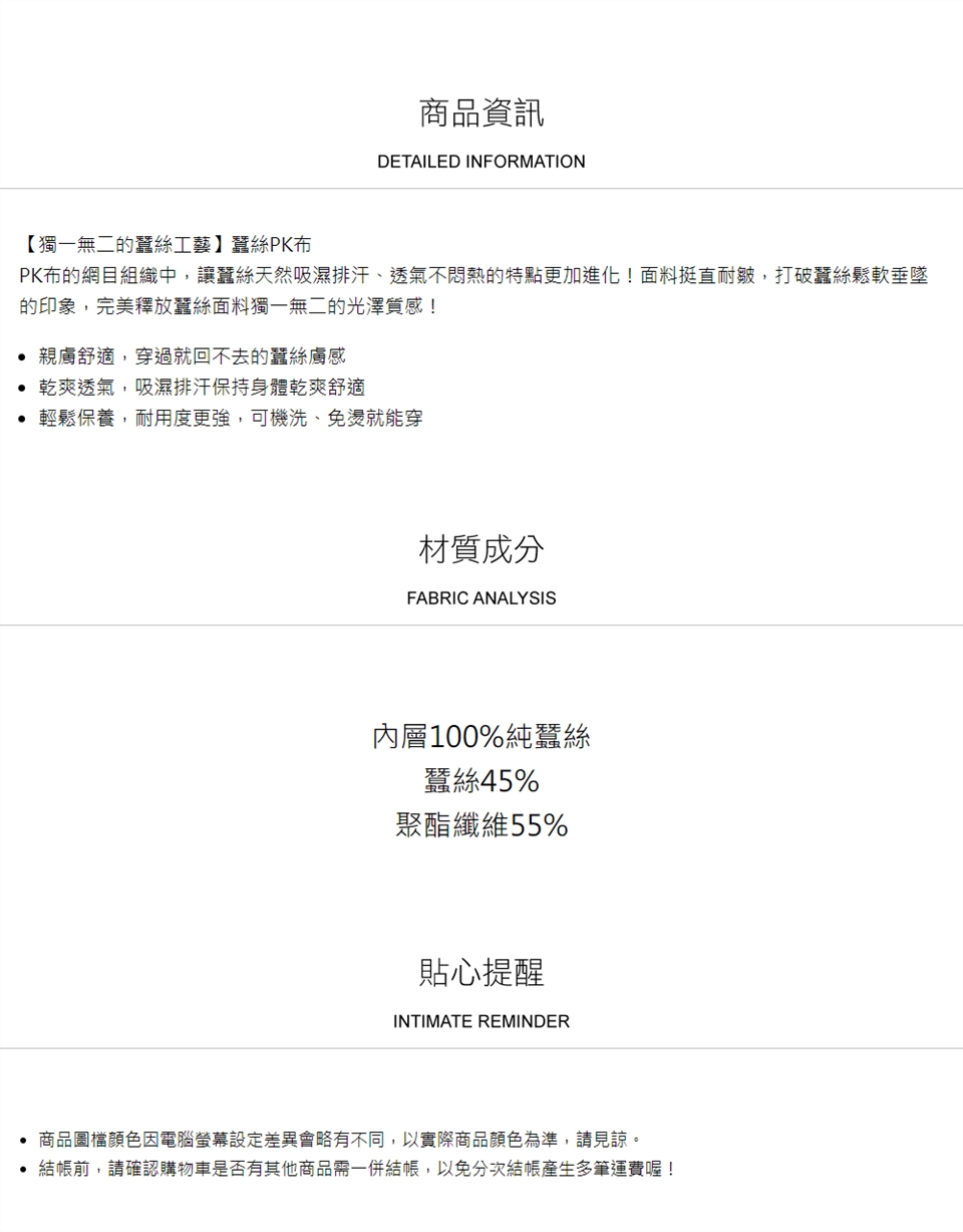 ► 請避免於太陽直射處曝曬,避免蠶絲纖維損壞。