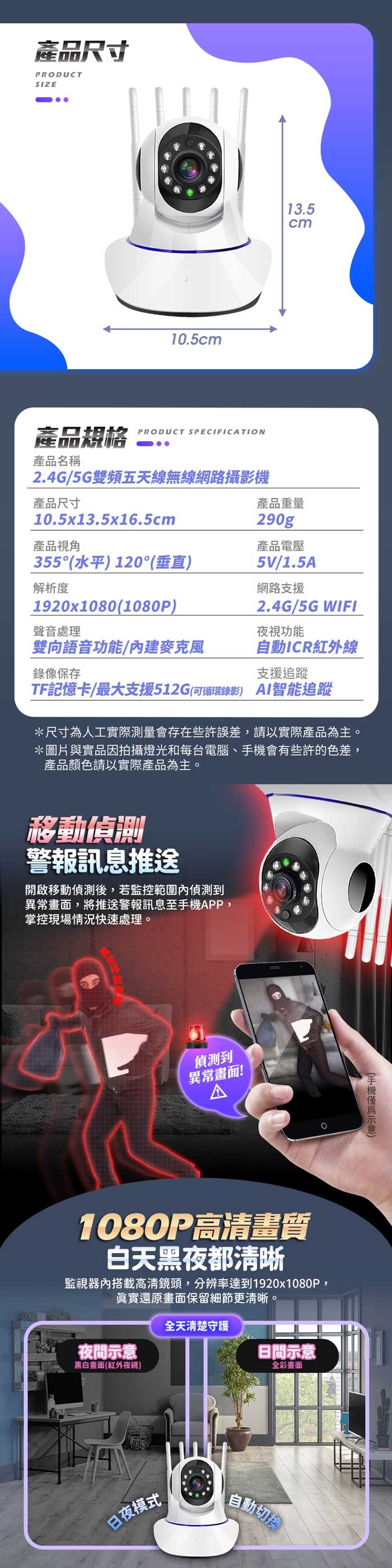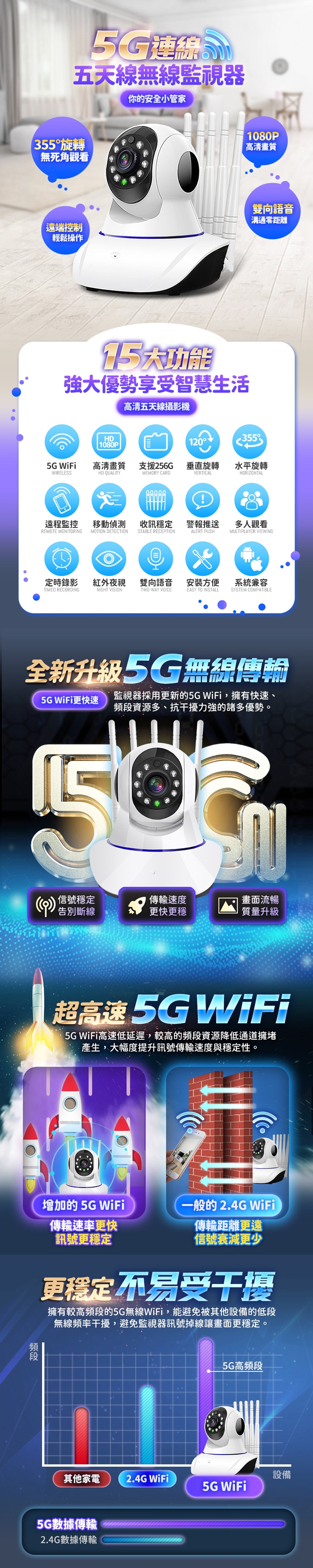 品名:雙頻2.4G/5G五天線無線網路旋轉攝監視器