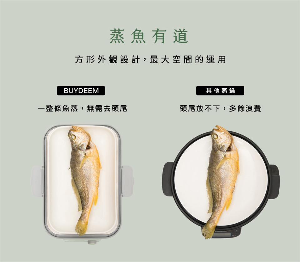●方形蒸鍋外觀,整條魚可直接放著蒸,食材營養全保留!