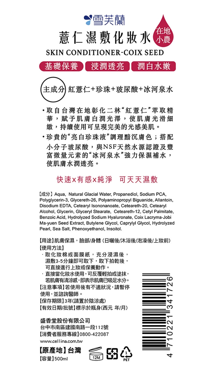 ◆ 取自台灣在地彰化二林“紅薏仁”萃取精華,賦予肌膚白潤光澤,使肌膚光滑細緻,持續使用可呈現完美的自然素肌。