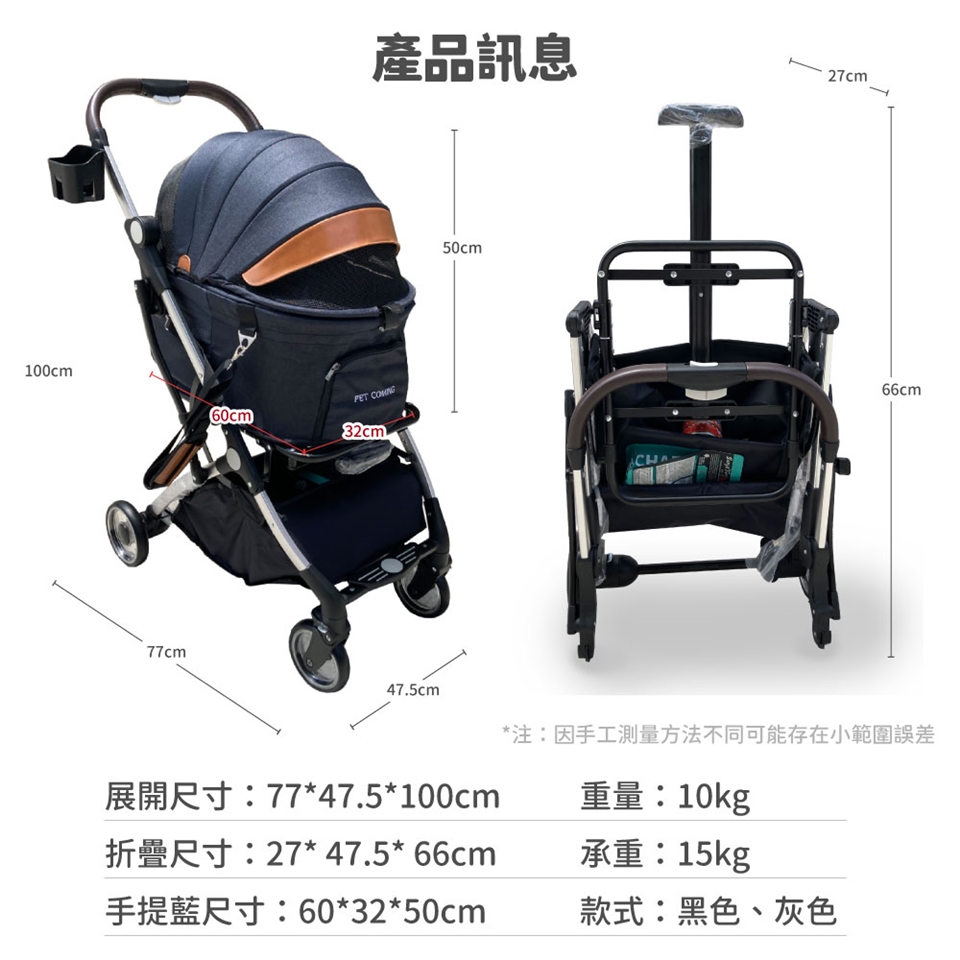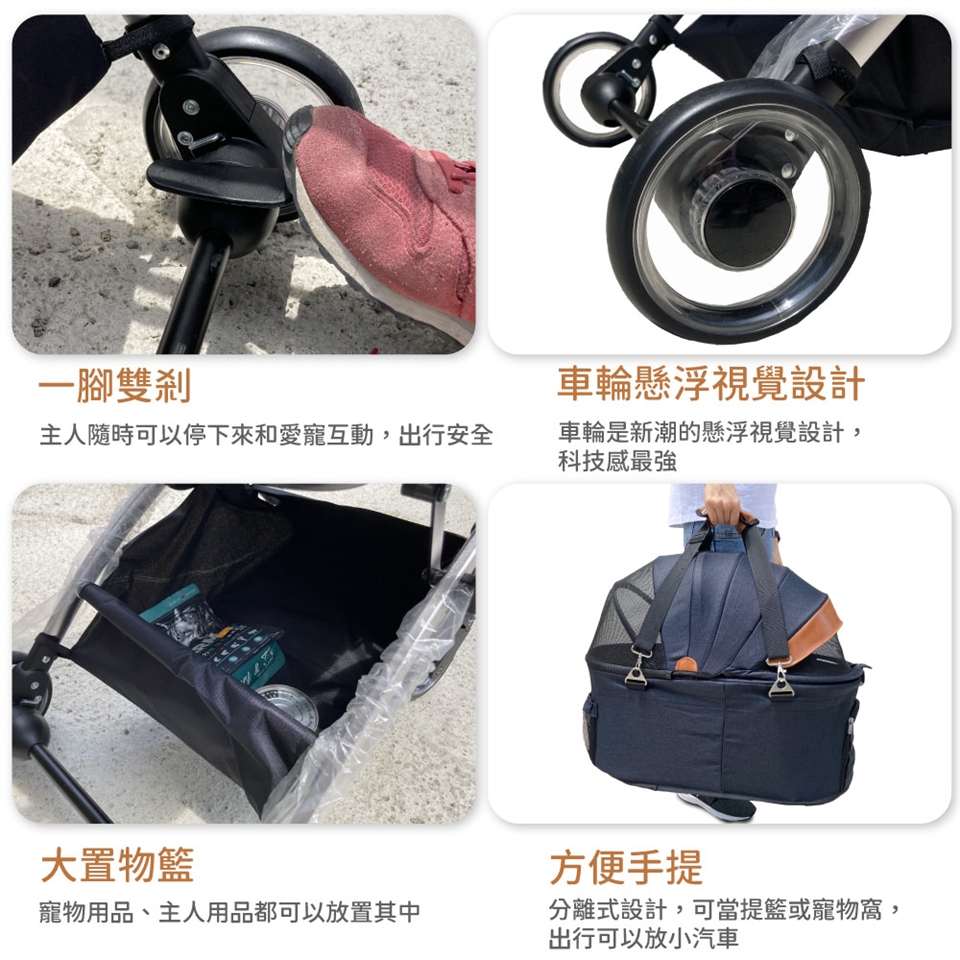 寵物來了 寵物推車-時尚兩用折疊推車(無附雨罩)(兩款可選)