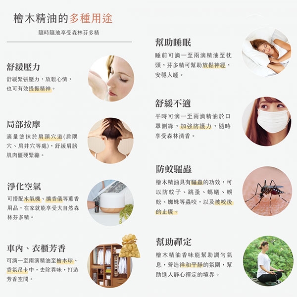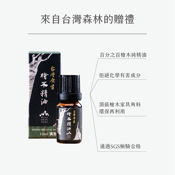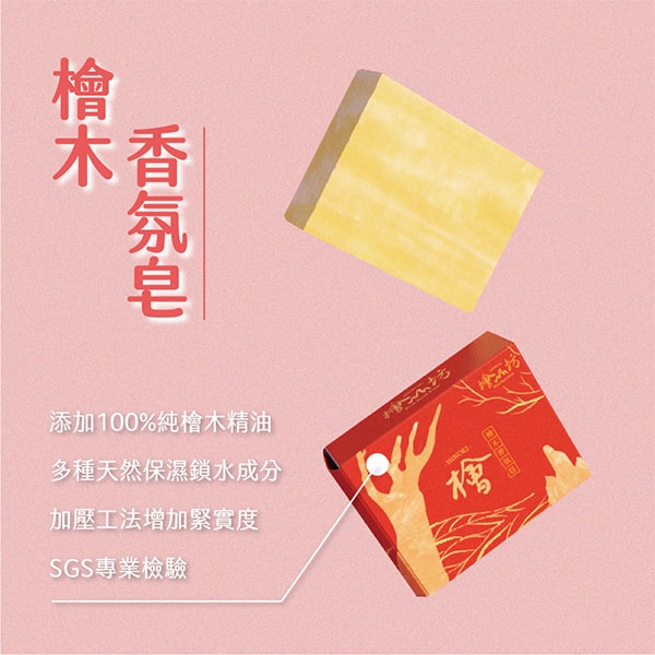 台灣原生檜木精油10ml ▻100%純天然台灣檜木精油。 ▻滴瓶設計,精緻小巧隨身攜帶。 ▻適用舒緩壓力、薰香、按摩、淨化空氣、泡澡、拖地。 ▻無酒精、無有機溶劑。 ▻採用二次蒸餾法、去蕪存菁。比市面的一次蒸餾精油富含更多芬多精! ▻通過SGS重金屬、生菌數、不含有害溶劑檢驗。 檜木香氛滋養皂 ▻添加純檜木精油,以植物油為基底,沐浴同時散發芬多精。 ▻添加玫瑰果油丶夏威夷堅果油、蘆薈萃取液、荷荷芭油、維他命B5 ▻多一道加壓工法,增加緊實度,改善手工皂遇水軟化速溶的缺點。 ▻不用時可置於衣櫃、散發檜木味可以驅蟲。