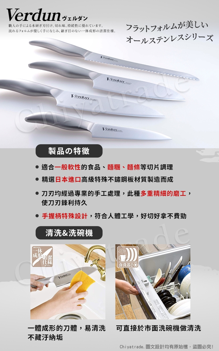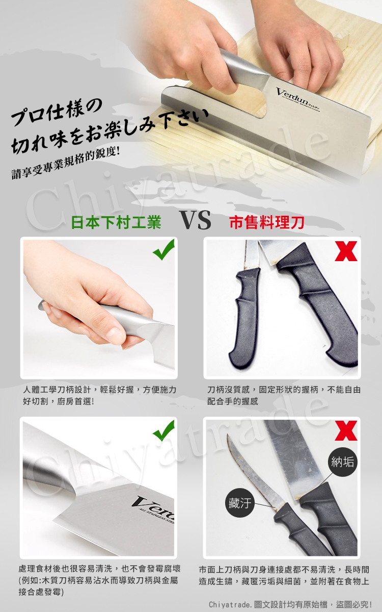 ●日本不鏽鋼材由工匠手工水磨刀片,清晰度和優良的耐久性,一體成型不藏汙納垢。