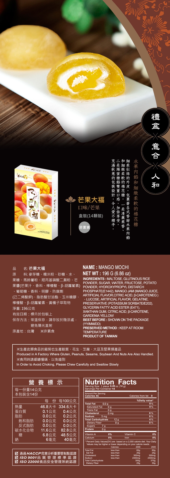 ※生產此類食品的廠房也生產麩質、花生、芝麻、大豆及堅果類產品
