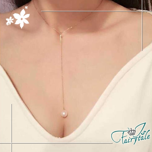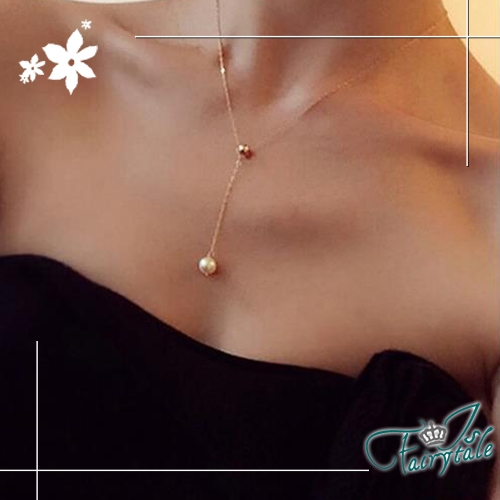 簡約的單顆珍珠,線條的落在頸間,如同淚滴滑落一般,