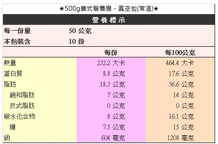 500g廣式鴛鴦腸-真空包(常溫),每包內容物如下: