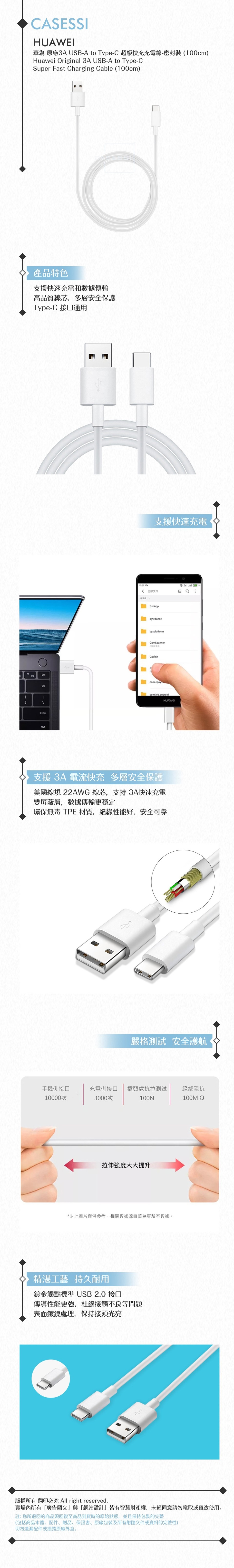 商品名稱:3A USB-A to Type-C 超級快充充電線