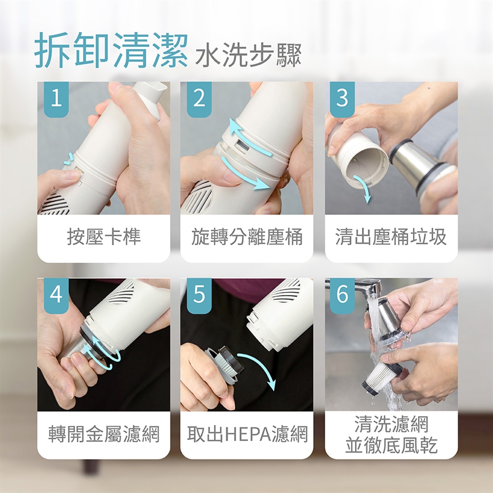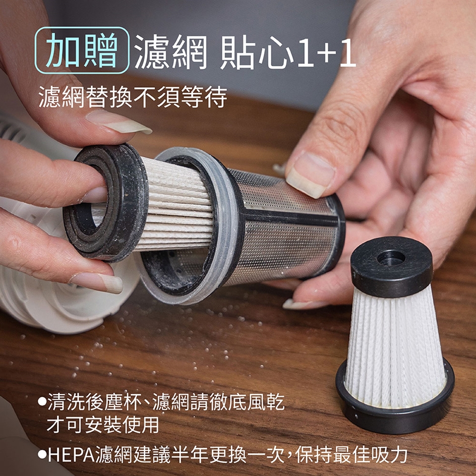 ● 金屬網 + HEPA濾網,雙重過濾徹底清淨