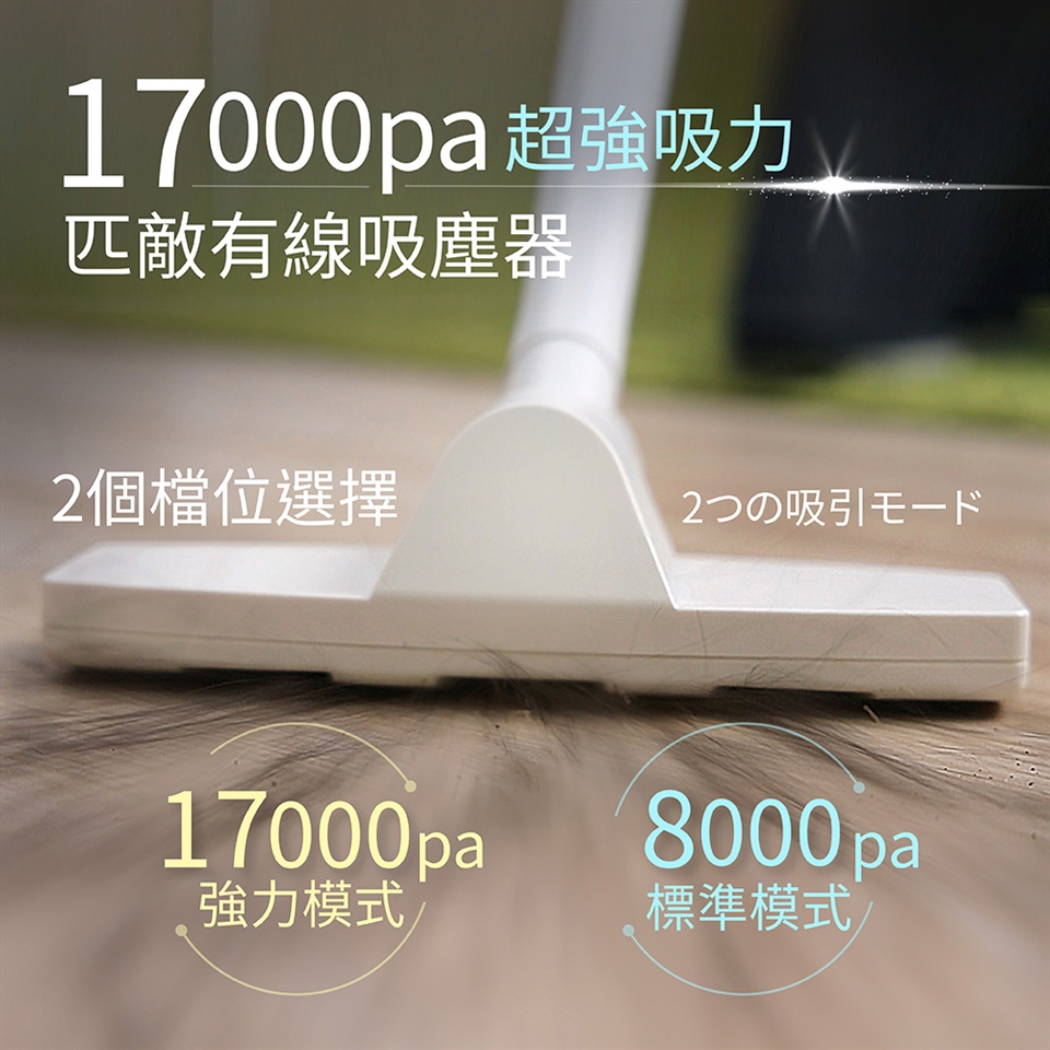 ● 17KPA 超強吸力,匹敵有線吸塵器