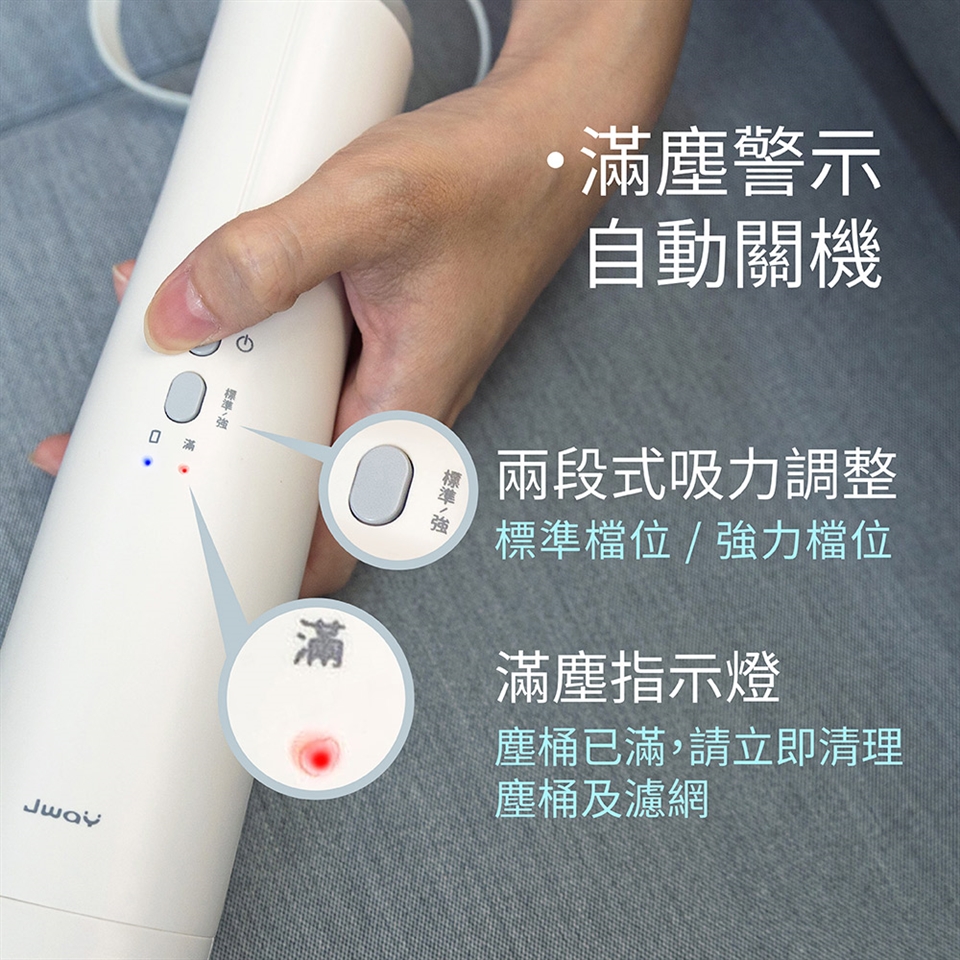 ● 集塵桶塵滿警示,自動關機保護