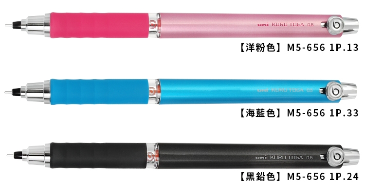 ●【品名】日本UNI三菱KURU TOGA不斷芯自動鉛筆M5-656(0.5mm筆芯;低重心;筆桿金屬霧面樹脂+防滑波浪型橡膠握桿)轉轉筆