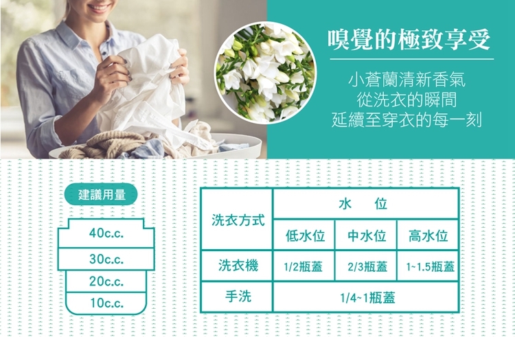 1.一般衣物洗滌可依照【建議使用量】使用,或斟酌髒污程度調整用量。
