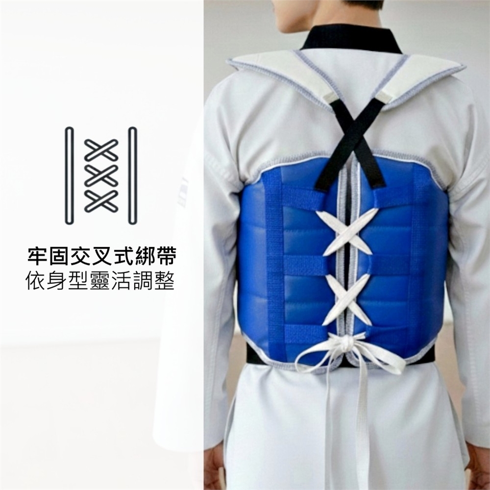 - 牢固交叉式綁帶,依身型靈活調整。