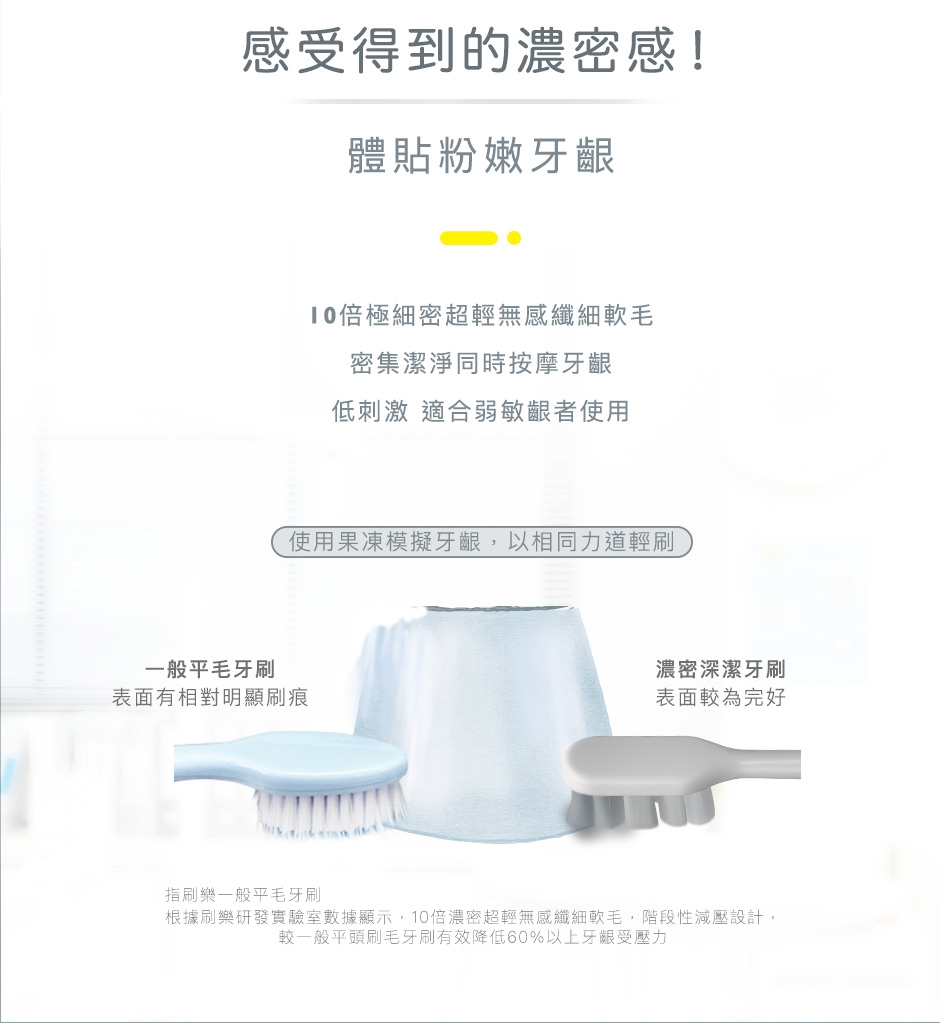 *4 10倍濃密 係指10倍植毛為比較刷樂一般牙刷所有孔內刷毛數總計