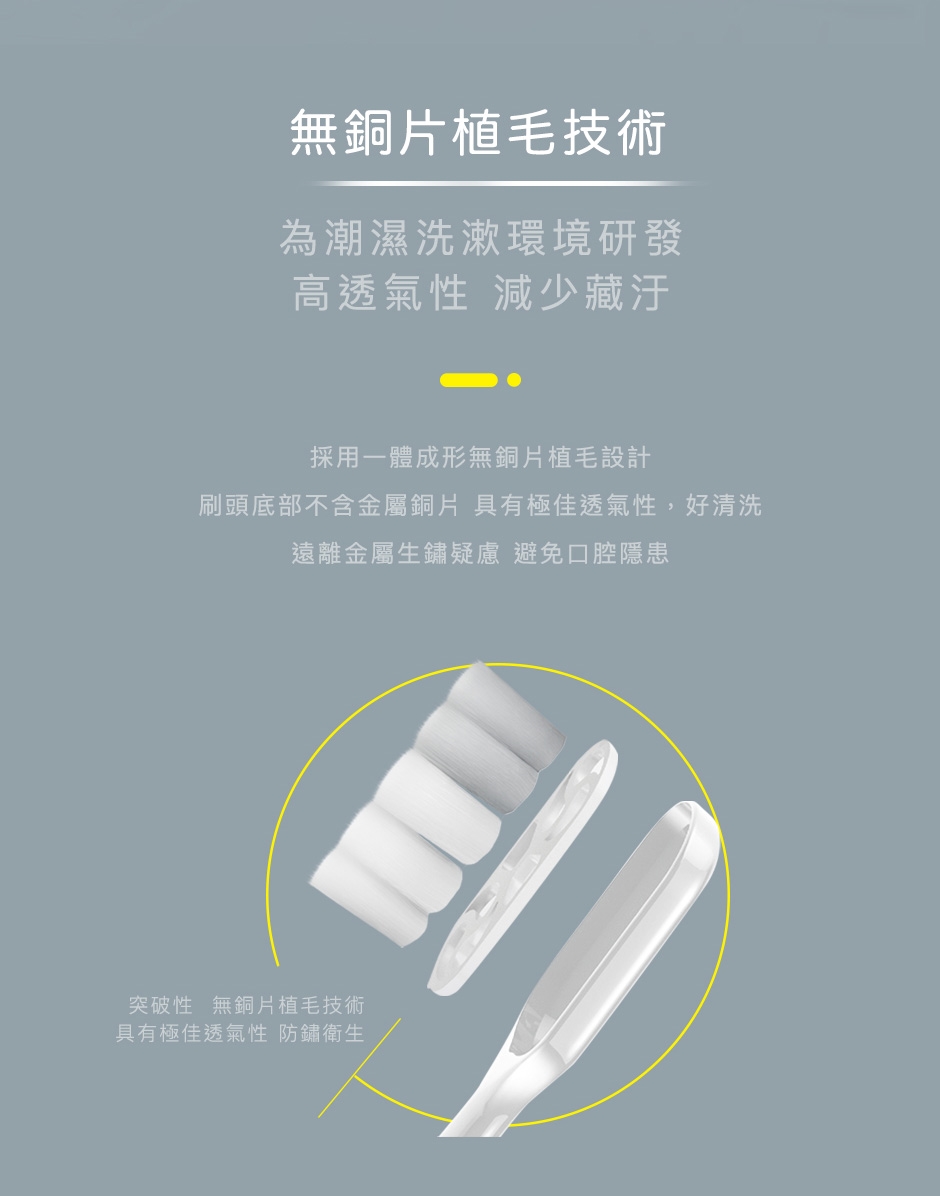 請配合正確刷牙習慣,並2-3個月更換新牙刷,以免刷毛彈性降低、細菌孳生,影響口腔健康。