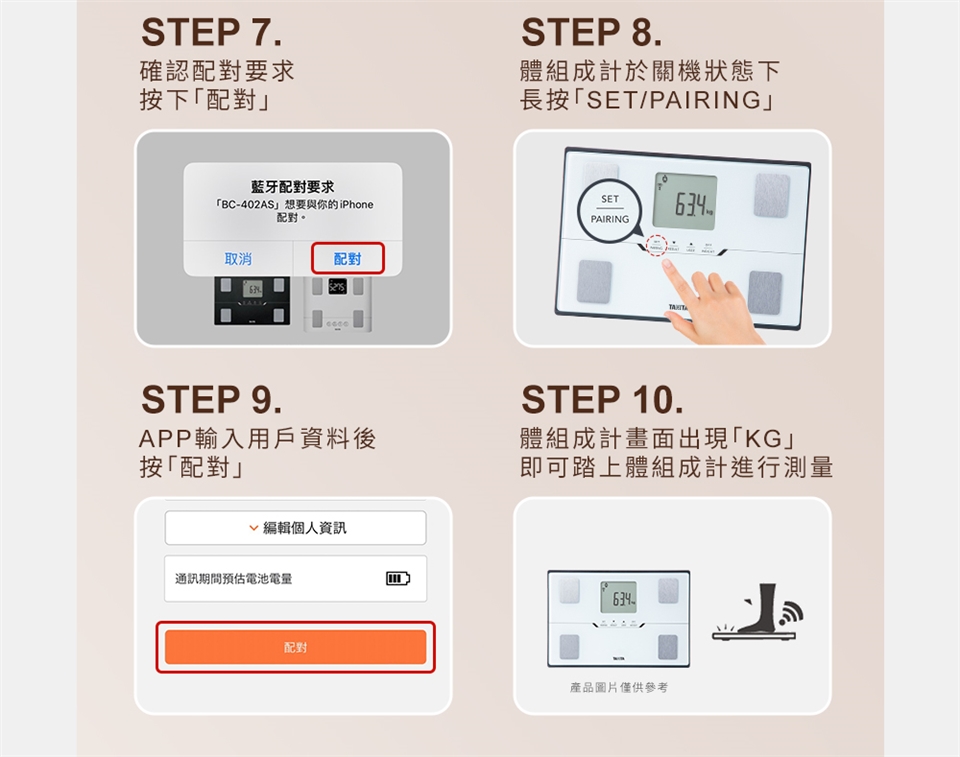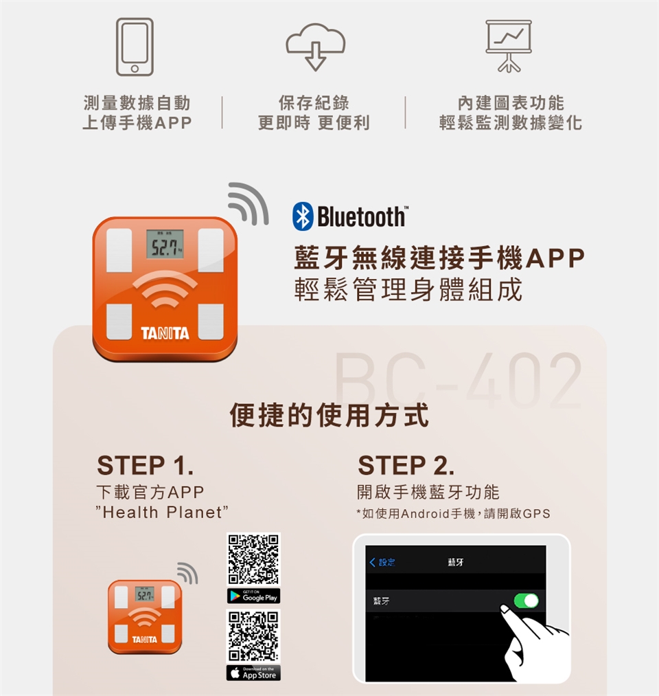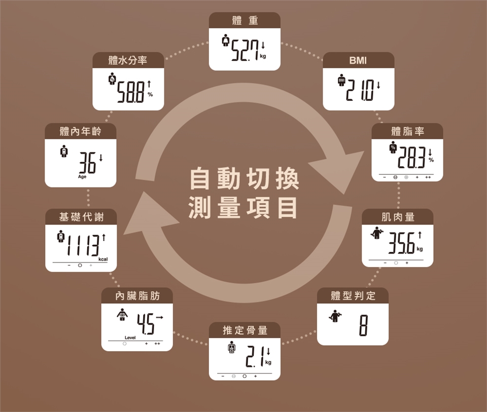 1.體組成計量測時會導入微量的電流,如果身體裡面裝設有植入式醫療器材(如:心律調節器…等)的話,須請教醫師指示使用。
