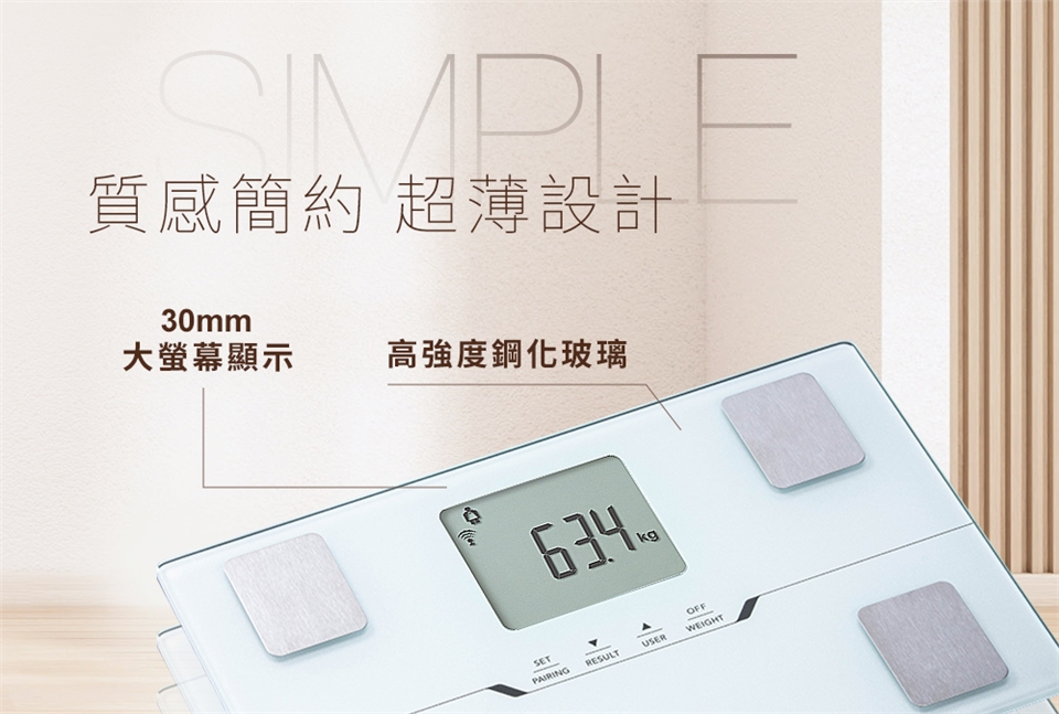 3. 務必平放在堅硬的平整地面上使用,若是體重計下有放軟墊/地毯/不平整木板/水泥地面,秤重都會有較大偏移的誤差。