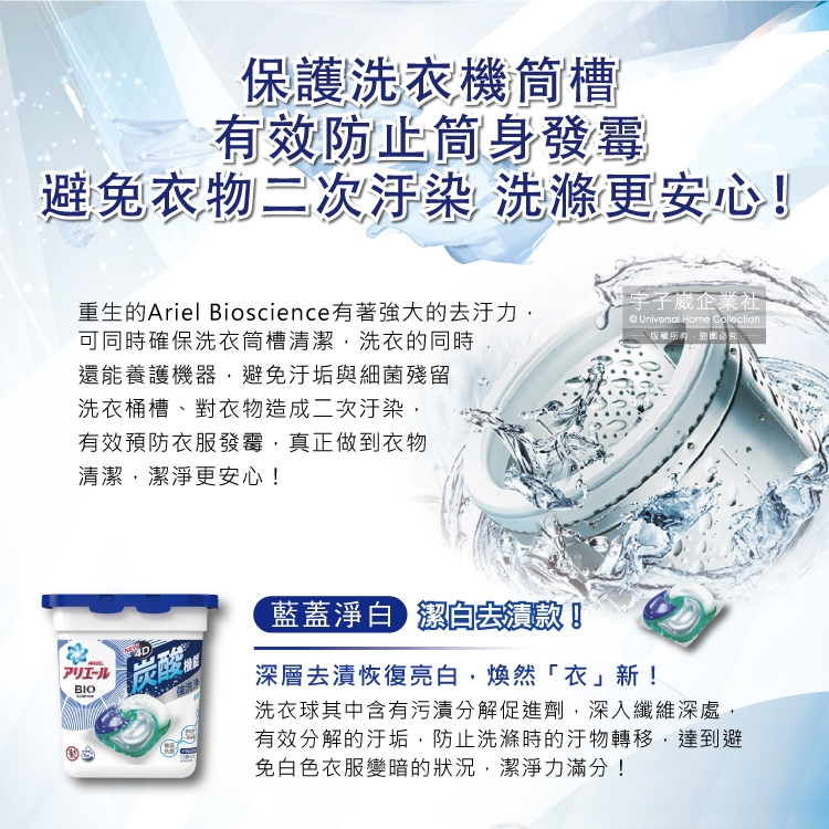 (8)如洗衣球破裂,沾到家具、地板、大理石等,請立即用水擦拭。