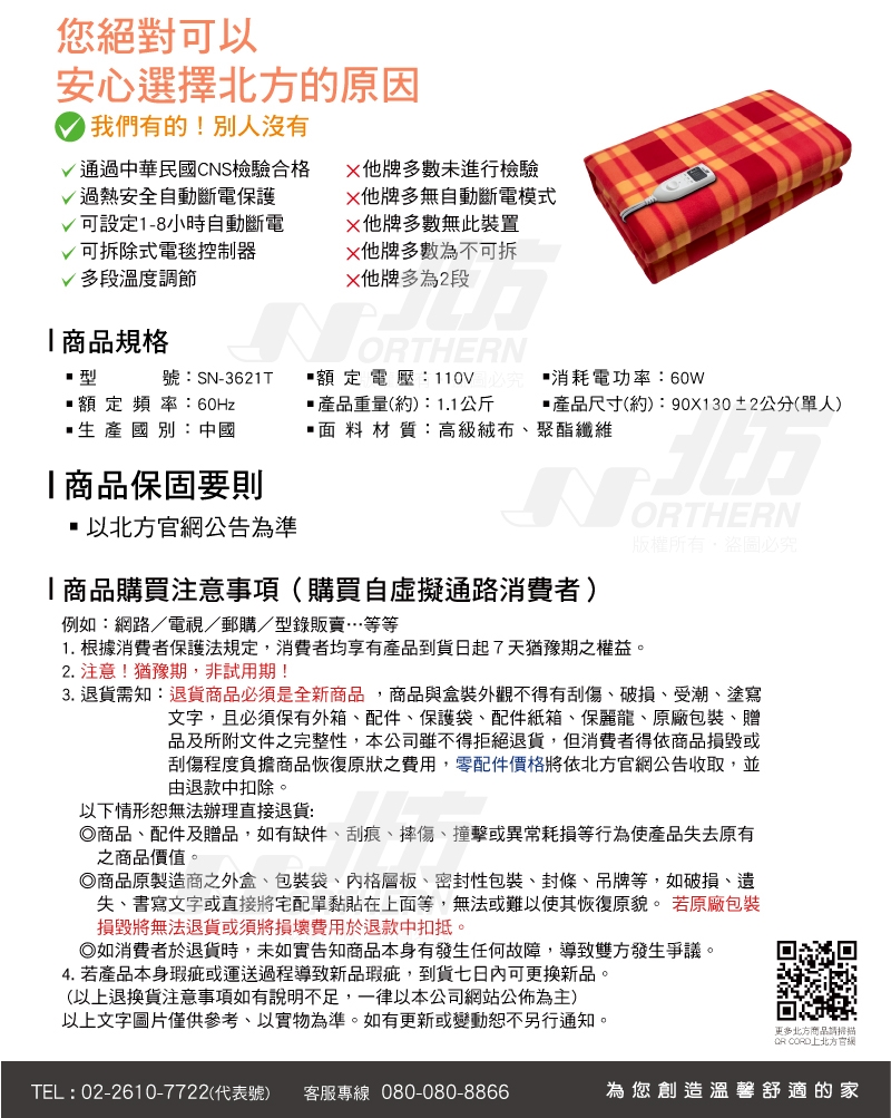 依北方官網上的保固要則為主:https://www.northern.com.tw/pages/warranty