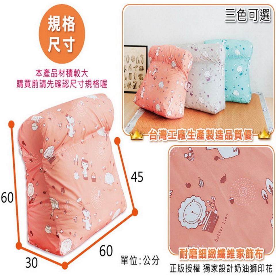 如為放置於床上或地上,則為居家必備尺寸大小適中的多功能靠枕噢!